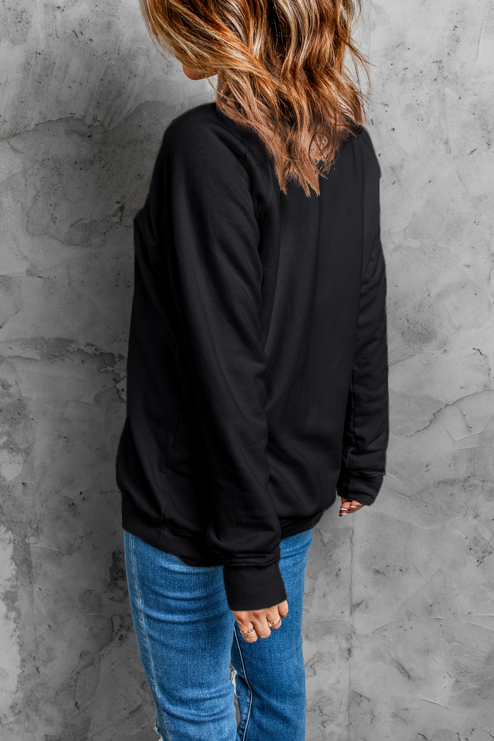 Black Rhinestone Checkerboard Clover Graphic St Patrick Sweatshirt