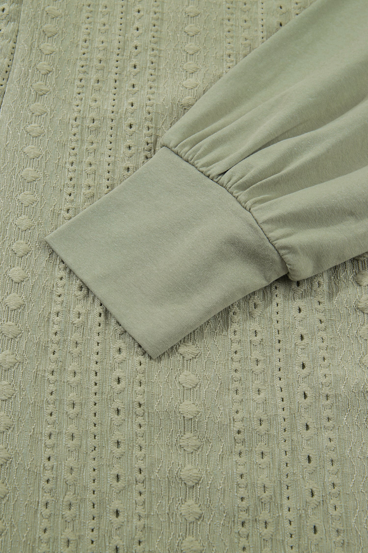 Laurel Green Jacquard Frilled Ruffled Long Sleeve Mini Dress